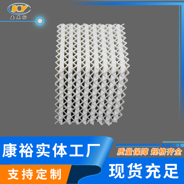 陶瓷波紋填料是一種新型規(guī)整填料,它是由許多具有相同幾何形狀的填料單元體組成。由于陶瓷的結(jié)構(gòu),具有良好的親水性能,其表面可形成極薄的液膜的湍動(dòng)及氣流的傾斜曲折通道能氣流但又不阻擋氣流使陶瓷填料能與金屬填料相匹敵,而其耐腐蝕、耐高溫性能金屬填料卻無法相比。表面結(jié)構(gòu)有良好的濕潤性能,能使液體加快流動(dòng)、使填料滯液量降至低。從而降低了過熱、聚合和結(jié)焦的機(jī)會。