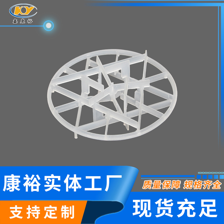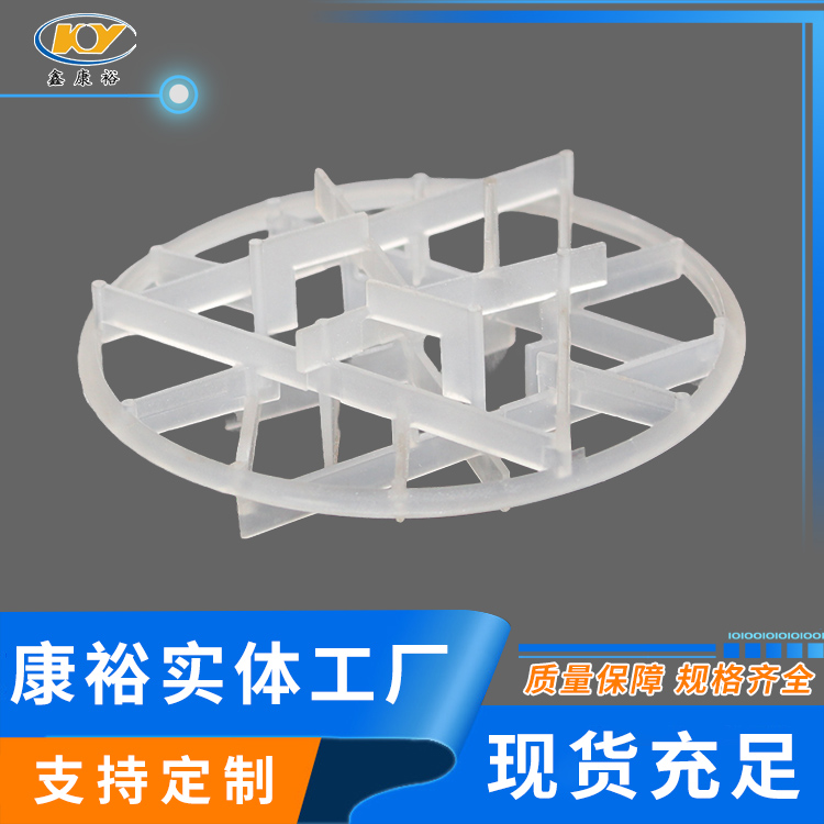 塑料雪花環(huán)具有空隙率大、耐熱、耐化學腐蝕,壓降和傳質單元高度低,泛點高、汽液接觸充分、比重小、傳質效率高等特點。在各種介質中的使用溫度為60-150攝氏度,廣泛用于石油、化工、氯堿、煤氣、環(huán)保等行業(yè)的填料塔中。