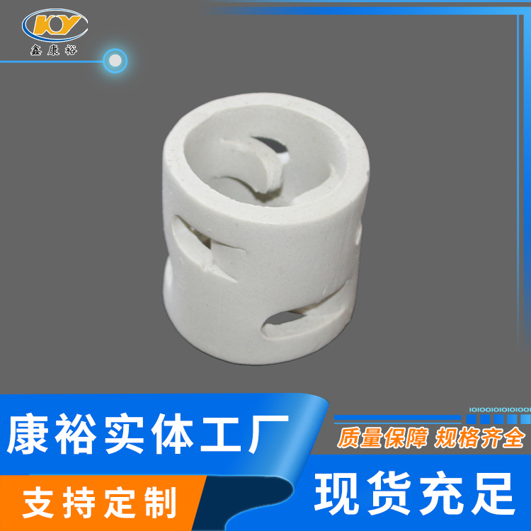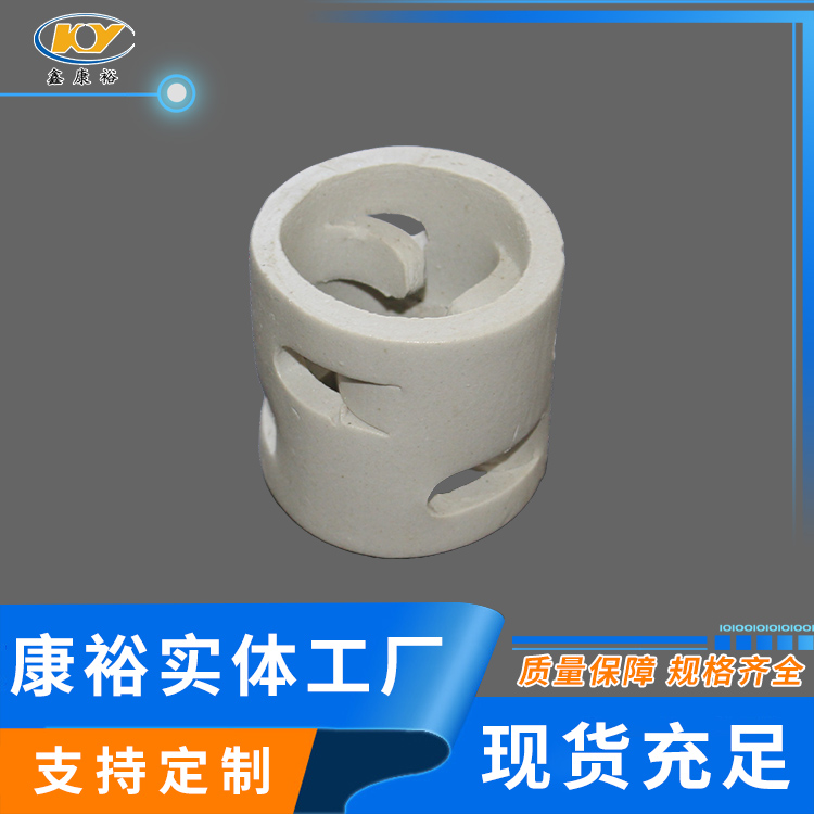 康裕陶瓷鮑爾環(huán)填料是一種高徑相等的開孔環(huán)型填料,每層窗孔有5個(gè)舌葉,每個(gè)舌葉內(nèi)彎指向環(huán)心,上下兩層窗孔的位置相反錯(cuò)開,一般開孔面積約占環(huán)壁總面積的30%左右。